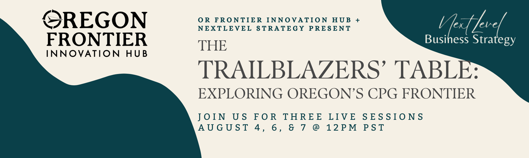On August 4, 5, 6, and 7 from 12pm-1pm Pacific, join the Oregon Frontier Innovation Hub and NextLevel Strategy virtually as we host discussions with professionals ready to share their insight into the CPG industry and more. Check out our schedule below.
