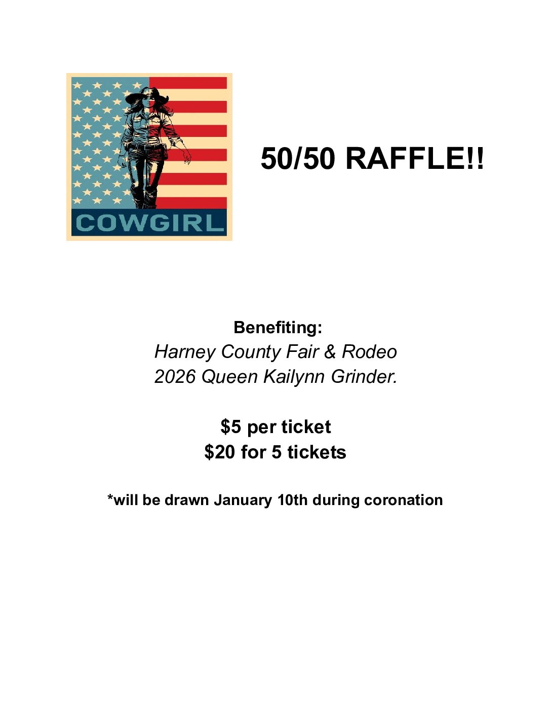 50/50 Raffle for Harney County Fair & Rodeo Queen