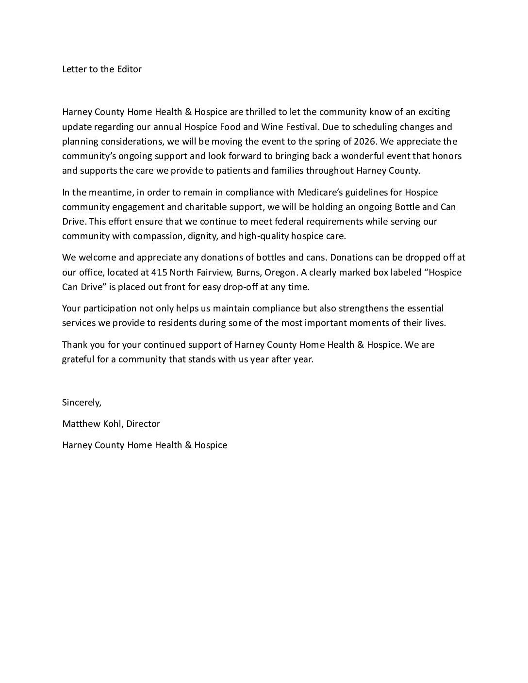 Home, Health and Hospice Bottle & Can Drive